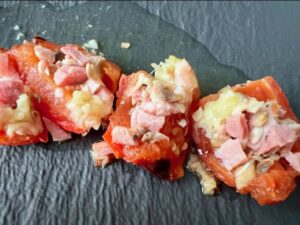 Een lekkere gevulde Tomaat met Ham en Champignon. Een oude klassieker en ook Escoffier gebruikte hem