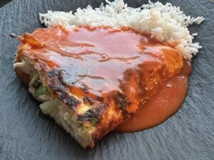 Een lekker ‘Chinese’ Omelet gevuld met Groenten en Kipfilet. De saus is eenvoudig te maken maar kost wel wat tijd omdat je zelf de Bouillon trekt.