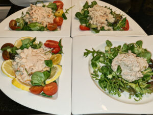 Een starter voor de volwassenen. Een blikje Krab en eigen gemaakte Whiskey-Cocktailsaus