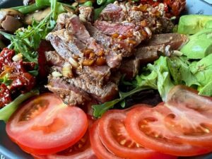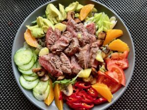 Wow! wat lekker. Een zeer kort gebakken Ribeye met een verrukkelijke combinatie van verse producten!