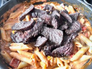 Een heerlijke Stroganoff van Bavette en staat in een mum van tijd op tafel. Altijd te weinig….